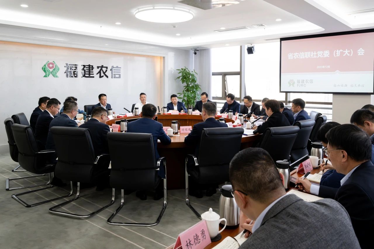 12月26日下午,省农信联社党委召开扩大会议,传达学习省委十一届五次全会、省委经济工作会议精神,研讨福建农信2024年工作思路。省农信联社党委书记、理事长李卫民主持会议,传达学习会议精神并做部署讲话,省农信联社领导班子全体成员、全体理事,各部门、办事处主要负责同志参加会议。