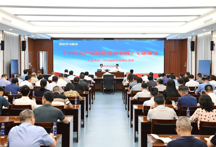 为推动党纪学习教育走深走实, 4 月 29 日上午,省水利厅党组以理论学习中心组扩大学习会形式,邀请省纪委监委案件审理室副主任黄佳君作《中国共产党纪律处分条例》(以下简称《条例》)解读辅导。省水利厅党组书记陈水树出席,厅党组成员、副厅长吴深生主持。