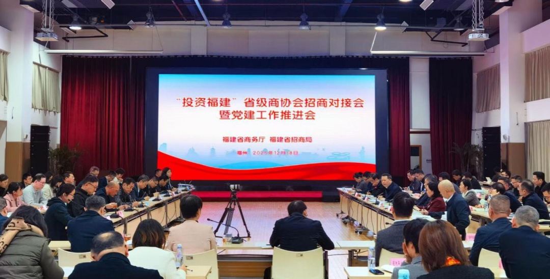 为深入学习贯彻党的二十届四中全会和省委十一届九次全会精神,强化党建引领,进一步发挥省级商务行业商协会作用。近日,省商务厅、省招商局举办“投资福建”省级商协会招商对接会暨党建工作推进会。