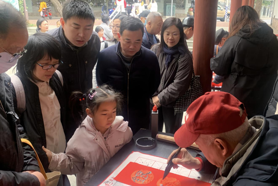 省侨联机关党员、干部组成志愿服务队深入社区,集中慰问困难群众,为他们送上生活物资、慰问金及新春祝福。随后,志愿服务队分组入户,走访党支部结对帮扶困难家庭,询问家庭情况,倾听实际需求,递上“暖心福袋”,让困难家庭感受到实实在在的温暖。活动还邀请书法名家为社区居民现场书写定制春联。“金马迎春春入户,紫燕报喜喜临门”“福星高照全家福,春光耀辉满堂春”……一副副寓意吉祥的春联跃然纸上,吸引众多居民前来领取,让社区居民在墨香中感受浓浓年味。