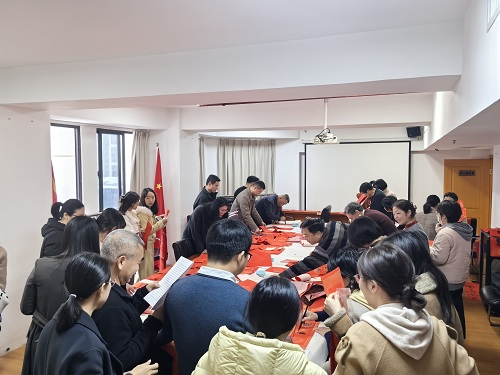 为传承弘扬中华优秀传统文化,营造祥和喜庆、廉洁文明的节日氛围,丰富干部职工精神文化生活,近日,在春节来临之际,省商务厅组织开展“迎新春 送祝福”活动,为干部职工送上满满的新春暖意与美好祝福。 活动现场翰墨飘香、年味浓郁。书法兴趣爱好者铺纸挥毫、笔走龙蛇。“策马扬鞭开骏业 兴商报国展宏图”,寄托对商务高质量发展的坚定信心,“廉风劲吹扬正气 实干担当促发展”,传递崇廉尚实、奋发有为的价值导向。