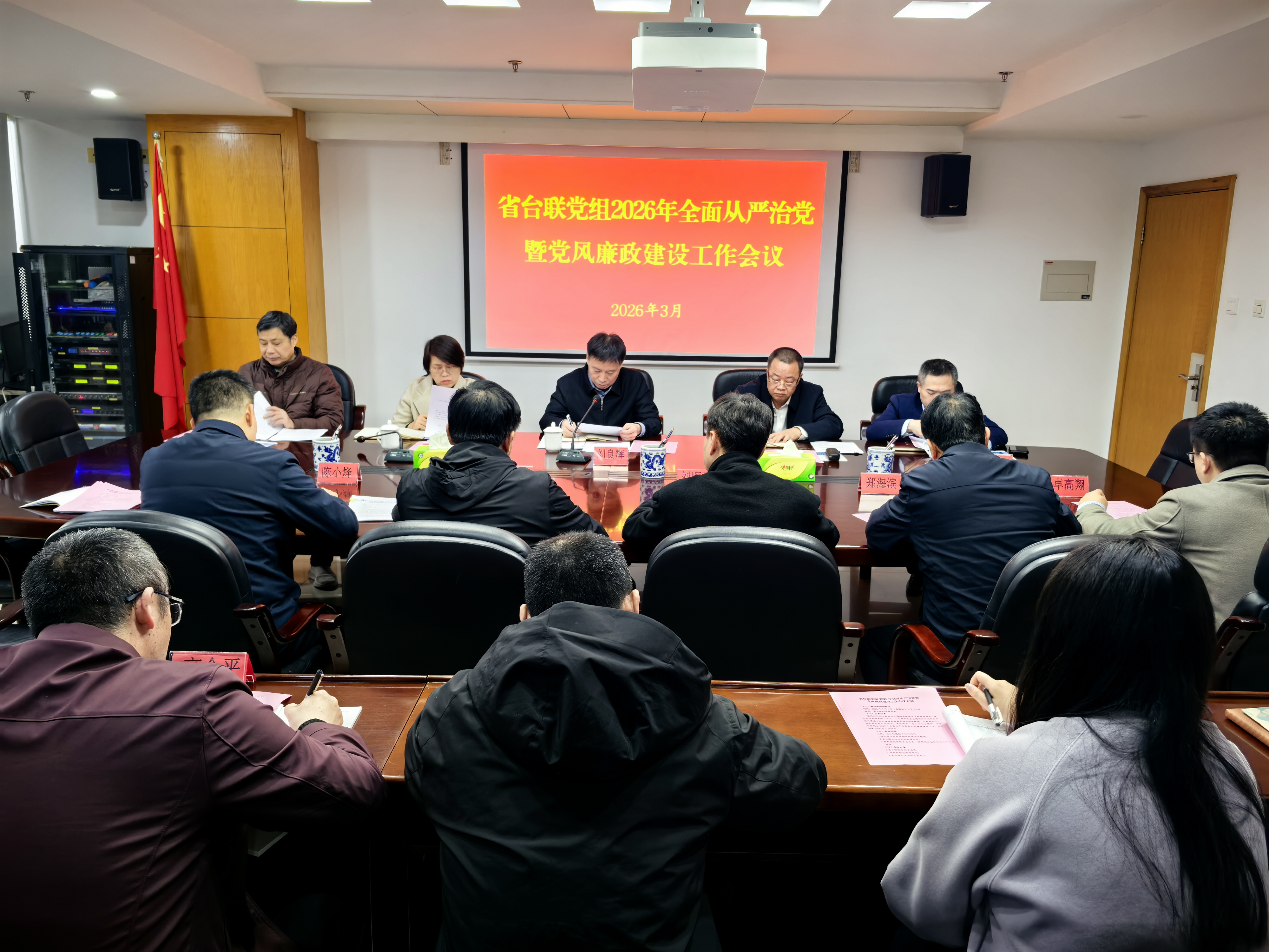 近日,省台联召开2026年全面从严治党暨党风廉政建设工作会议,深入学习贯彻习近平总书记在二十届中央纪委五次全会上的重要讲话精神和省纪委十一届六次全会精神,研究部署省台联全面从严治党和党风廉政建设工作。省台联党组书记刘良辉主持并讲话,省纪委监委驻省委统战部纪检监察组组长、省委统战部部务会议成员陈永文莅会指导并提出工作要求。 会议指出,2025年省台联党组坚持以习近平新时代中国特色社会主义思想为指导,深入学习贯彻习近平总书记关于党的建设的重要思想、党的自我革命的重要思想,全面贯彻落实党的二十大和二十届历次全会精神,纵深推进全面从严治党,以高质量党建引领保障台联事业高质量发展。 会议强调,要深入学习贯彻二十届中央纪委五次全会和省纪委十一届六次全会精神,对照“三个更加”重要要求,强化政治引领,牢牢把握全面从严治党的正确方向。要坚持严的基调,压实主体责任,以更高标准、更实举措推进全面从严治党。要突出自我革命,以开展树立和践行正确政绩观学习教育为抓手,深化正风肃纪,营造风清气正的政治生态。要聚焦党建引领,进一步在建章立制、紧固防线上下功夫,推动党风廉政建设与中心工作深度融合,为助力两岸融合发展示范区建设、推进祖国统一大业提供坚强保障。 省台联领导班子成员、驻部纪检监察组有关同志及机关全体党员干部、职工参加会议。