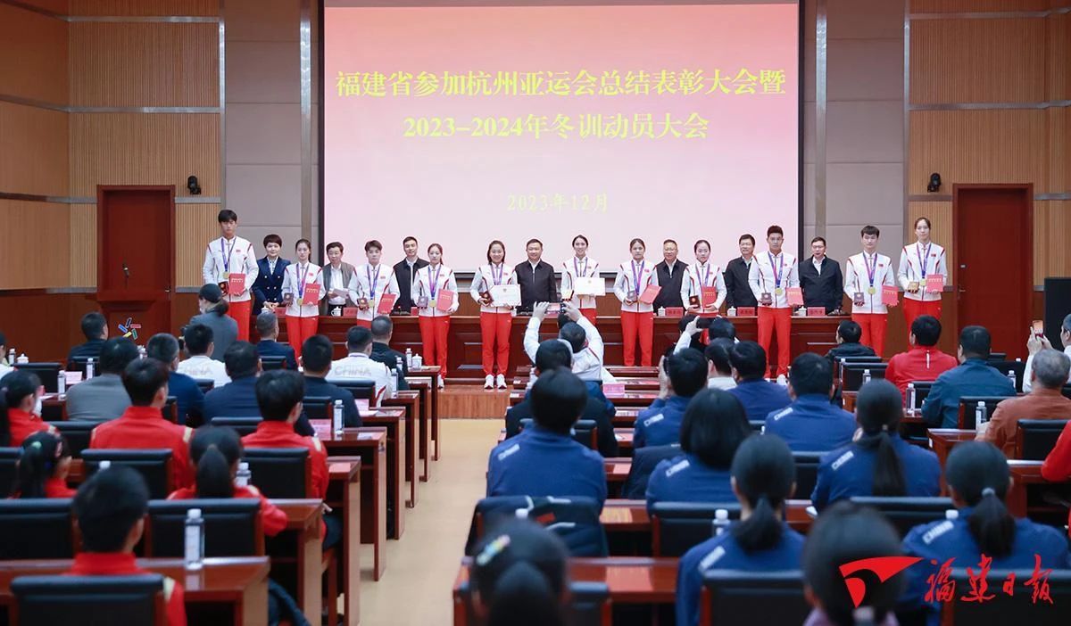 顽强拼搏 再接再厉 为祖国和家乡人民赢得更大荣誉 我省表彰参加杭州亚运会获奖运动员教练员及有功集体与个人 12月13日,我省参加杭州第19届亚运会总结表彰大会暨2023-2024年冬训动员大会在福州举行。此前,省委书记、省人大常委会主任周祖翼,省委副书记、省长赵龙在福州会见了运动员教练员代表。