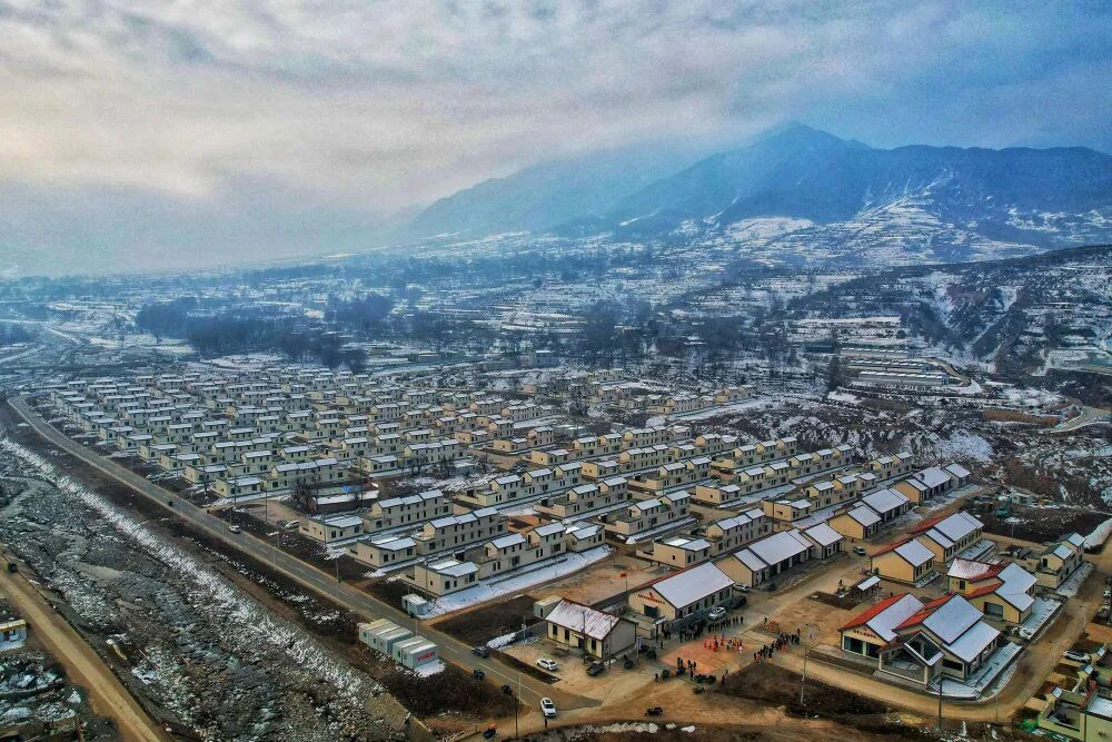 在甘肃省临夏回族自治州积石山保安族东乡族撒拉族自治县吹麻滩镇林坪村集中安置点,村民王福玲在张贴新年饰品(2024年12月31日摄)。新华社发(史有东 摄) 疫情、地震、洪涝……历经各种风险挑战,防止返贫致贫的“铜墙铁壁”冲不倒、守得住!积石山的变化,正是中国为何能创造减贫奇迹的生动解答。