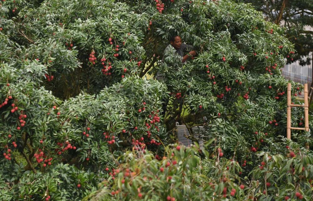 果农在广东茂名高州名园生态园采摘荔枝(2025年6月4日摄)。新华社记者 邓华 摄 在山东枣庄考察石榴种植园,提出“要做好品牌、提升品质,延长产业链”;