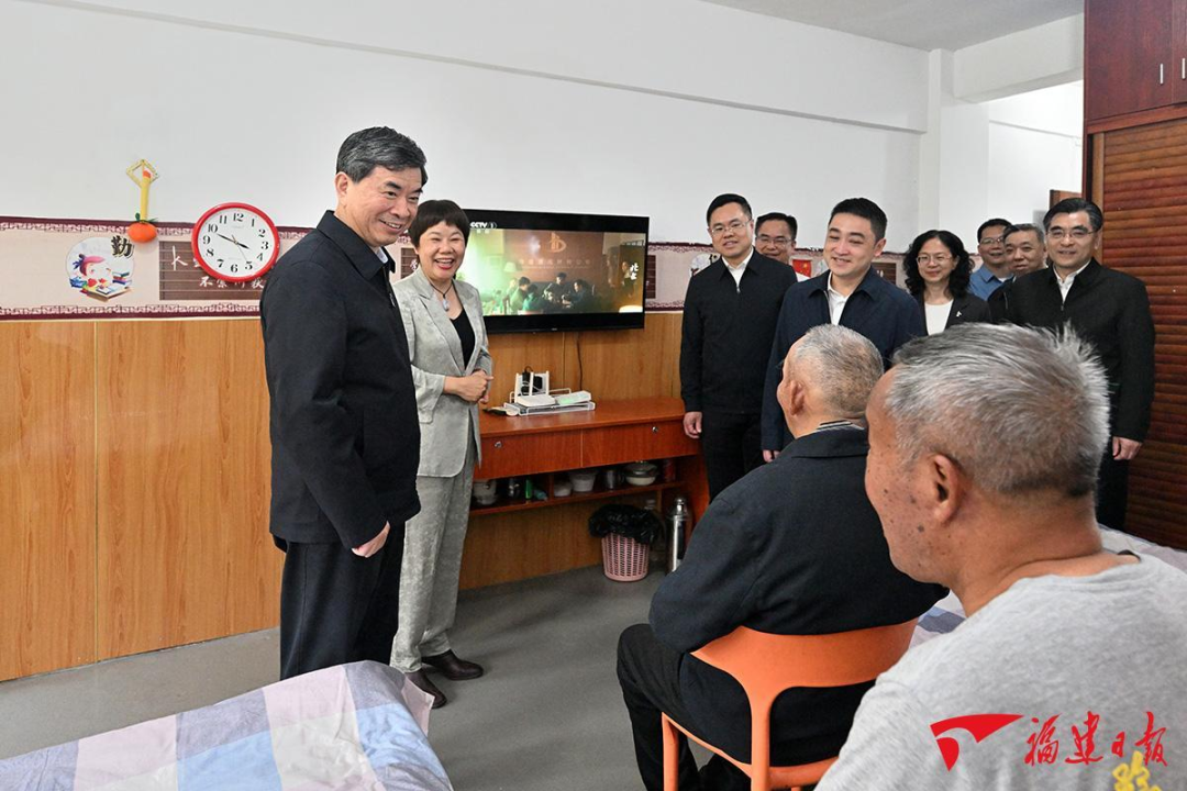 23日,周祖翼在上杭县养心园养老院调研。 周祖翼还走访了上杭养心园养老院,实地察看老人日常起居饮食服务保障、医疗保健等情况,听取养老惠民资金监管工作汇报,强调要持续深化群众身边不正之风和腐败问题集中整治,健全养老资金全链条监管机制,助推养老服务提质增效。在客家族谱博物馆,周祖翼鼓励大家要做好研究宣传和活化利用,推动对台文化交流。 省领导吴偕林、江尔雄参加。