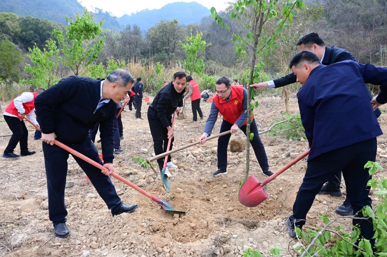 最是一年春光好,植树添绿正当时。3月17日上午,省委老干部局组织局系统干部职工赴福州市晋安区新店镇泉头农场开展义务植树活动。省委组织部副部长、老干部局局长兼省委离退休干部工委书记陈炎标带队参加,局班子成员及局系统干部职工近30名共植新绿。 上午9时30分,参加人员准时抵达活动现场。在简短的动员后,大家迅速以饱满的热情投入到热火朝天的植树劳动之中。活动现场,局领导身先士卒,挥锹铲土、扶苗填坑、培土浇水;全体干部职工分工协作、配合默契,现场呈现出一派繁忙而有序的景象。经过一个多小时的辛勤劳作,一株株山樱花树苗迎风挺立、错落有致,为初春的泉头农场增添了一抹亮丽的色彩和勃勃的生机。 植下一棵树,收获万点绿。此次义务植树活动,不仅为美化当地生态环境贡献了力量,更进一步凝聚干部职工的奋进合力,筑牢生态文明意识。大家纷纷表示,将以此次活动为新起点,深入学习贯彻习近平生态文明思想,从身边小事做起,持之以恒践行绿色发展理念,以实际行动为建设美丽福建添砖加瓦。