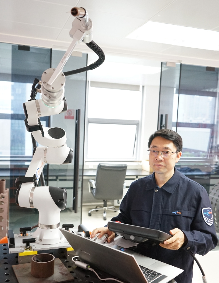 年逾不惑之际,陈照春做出了一个大胆的决定——跨界钻研机器人焊接技术。他深知,焊接工艺是特种设备安全的“关键一焊”,为了把手工焊接的“经验活”转化为机器人的“标准活”,他告别安静的实验室,钻进焊花飞溅的车间,跟着老师傅从握焊枪的姿势学起。夏日高温下,厚重的焊接服被汗水浸透,干了又结满盐霜;焊渣偶尔溅到手臂,留下细密的疤痕,他简单处理后便继续练习;强光灼伤眼睛,红肿刺痛难忍,冷敷缓解后依旧坚持钻研。凭借这份执着,他在技能竞赛的舞台上不断突破:2019到2023年,从省赛第二到省赛第一;在同年举办的首届全国职工数字化应用技术技能大赛上,46岁的陈照春作为赛场上年龄最大的选手,凭借扎实的功底和不断的总结思索,拿下理论、实操双第一,创下福建在该类焊接赛事的历史最佳成绩。 科技先锋:恒心攻关,用创新促升级